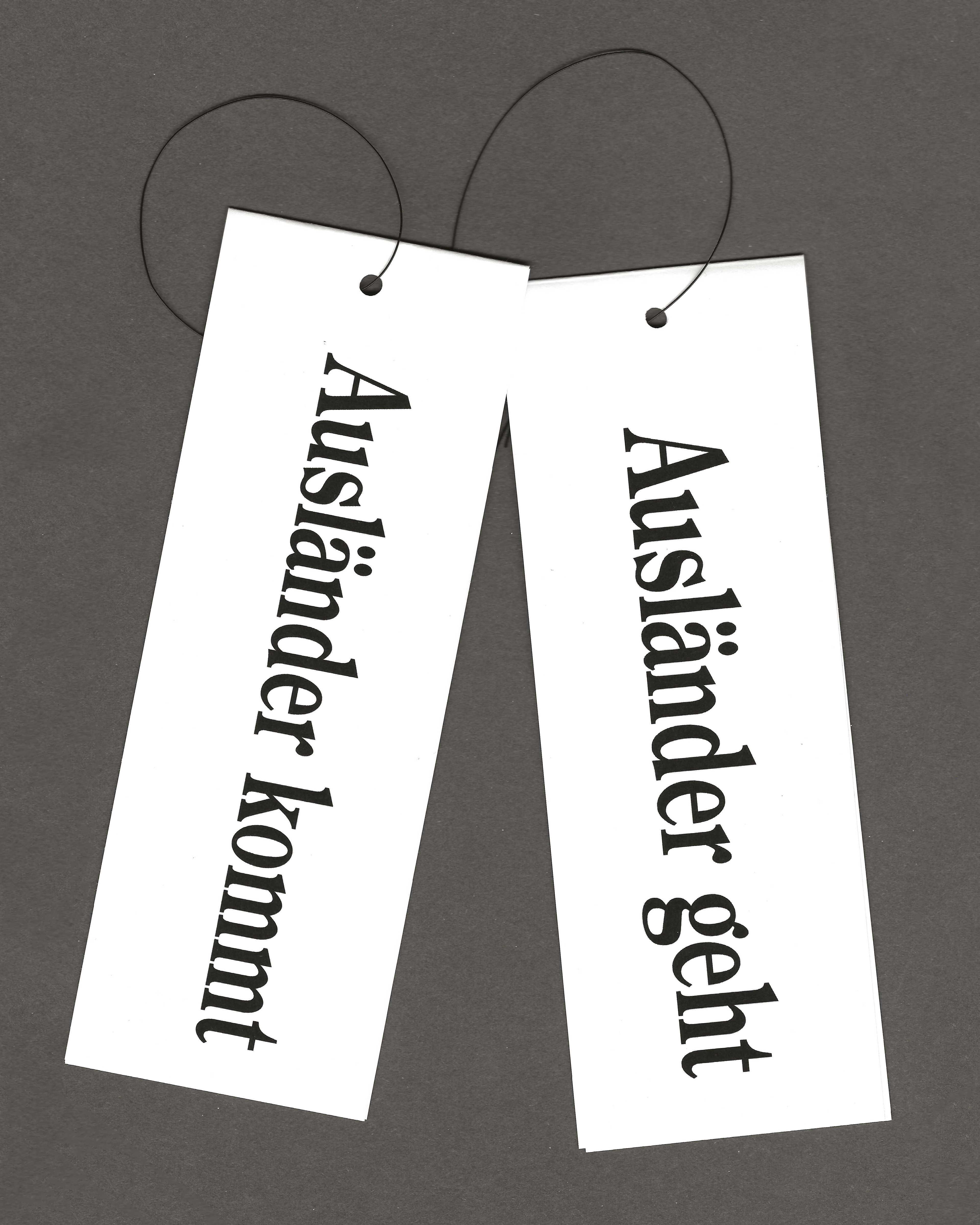 Silkscreen-printed T-shirts; a tag book (8 pages, laser print on paper); dimensions variable