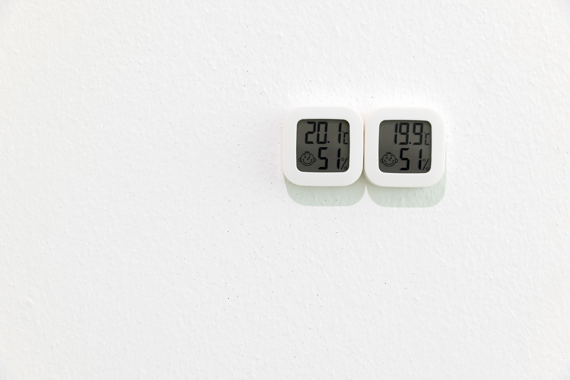 two thermo-hygrometers from the same brand with somehow (always) different display data,